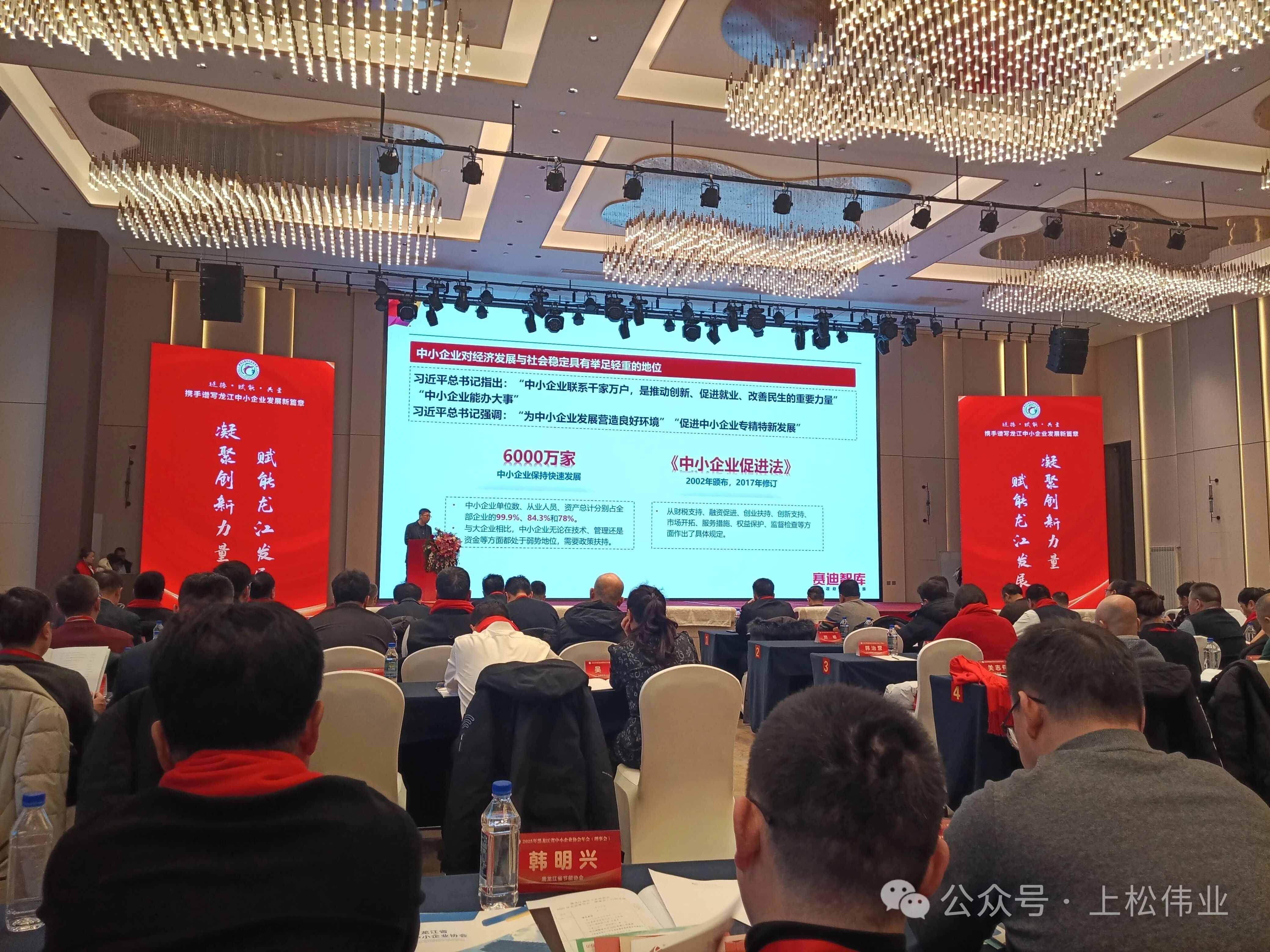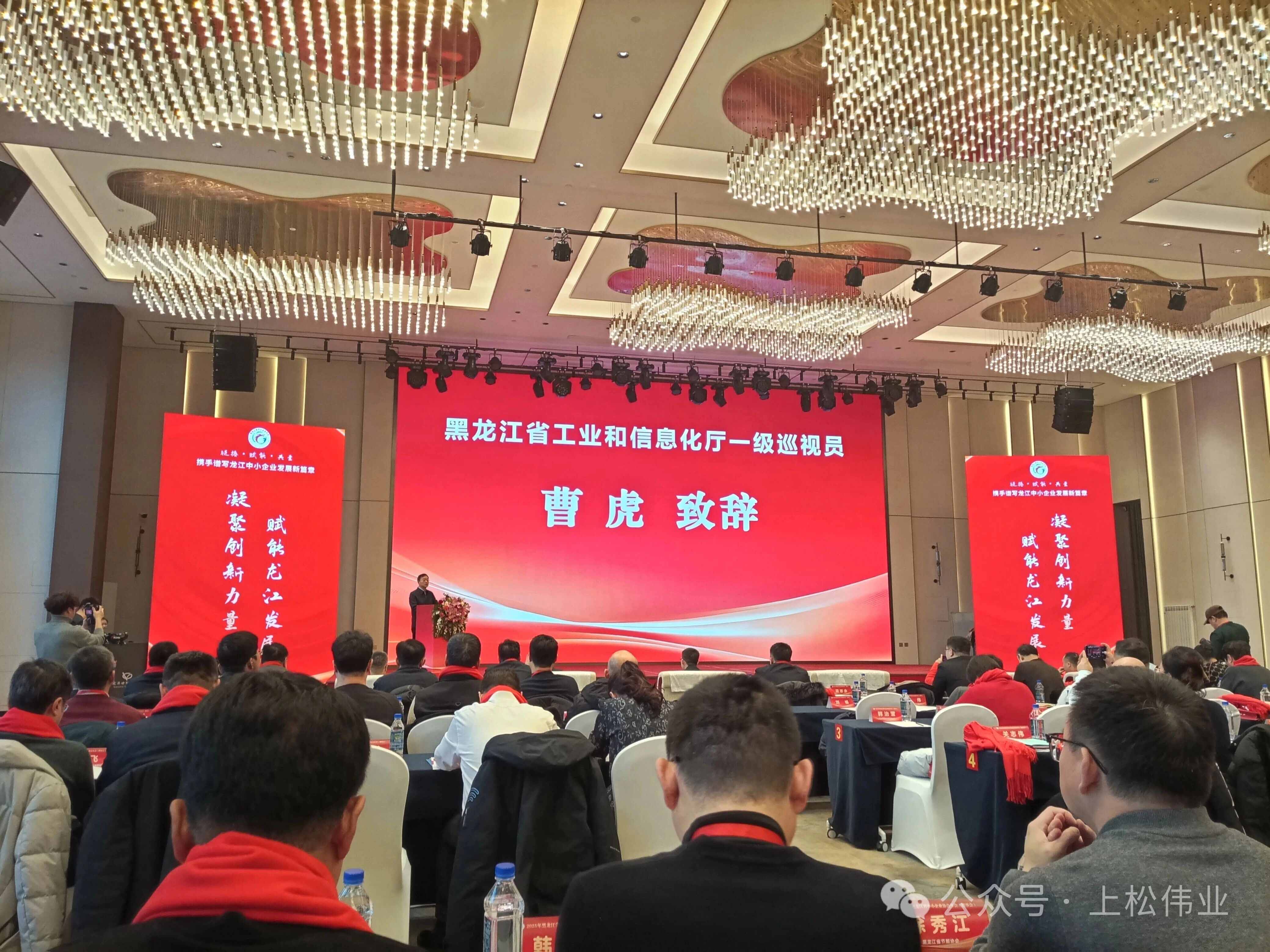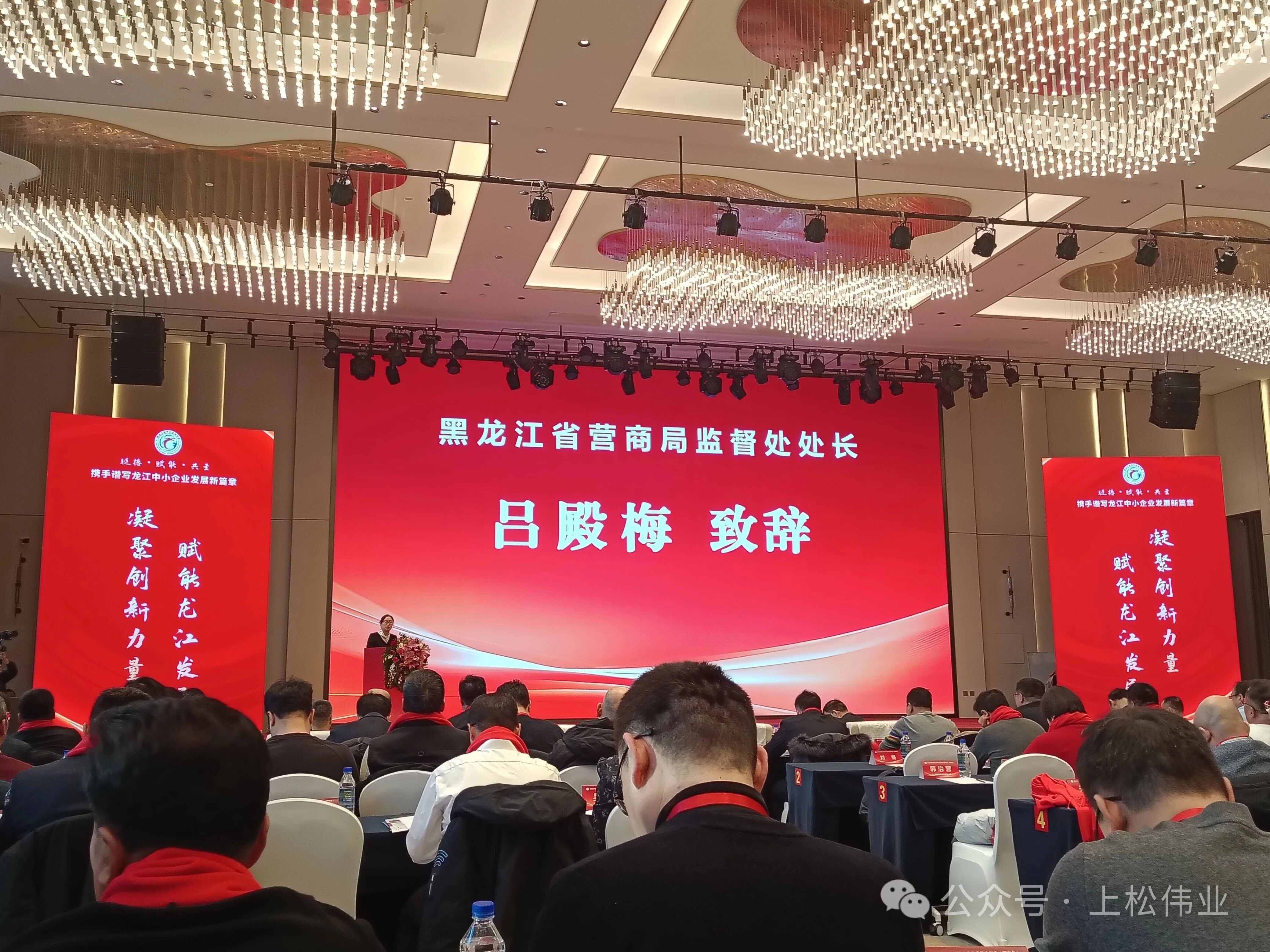 2025年12月17日,黑龙江省中小企业协会2025年年会(理事会)在哈尔滨冠洋世纪大酒店盛大启幕。 本次大会以“迎新聚势 智创辉煌”为核心主题,汇聚省直相关部门领导、行业顶尖专家、标杆企业家及优质服务机构代表,搭建起政策解读、经验交流、资源对接的高端平台。我公司总经理陈国松、办公室主任金慧婷受邀参会,与各界精英共话发展,为龙江中小企业高质量发展注入强劲动力,助力全省民营经济在振兴征程上阔步前行。
