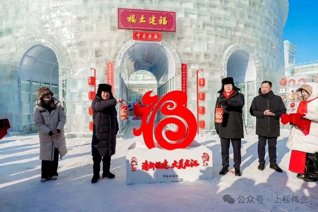 除了主会场的精彩活动之外,系列配套活动也在哈尔滨各处同步上演。在哈尔滨冰雪大世界,以福建世遗土楼为原型打造的冰雕惊艳亮相,晶莹剔透的冰砖完美复刻了土楼的独特结构,成为游客争先打卡的热门点位。同步启动的“浪花慕雪白,乐享福年来”福建文旅图片展,以“浪花”与“雪花”为视觉载体,通过图片展示、福茶品鉴、文创互动等形式,吸引了大批市民游客驻足参观。此外,“福气来上头”福建文旅创意快闪活动也将走进中央大街等,让市民游客沉浸式感受福建文化魅力。