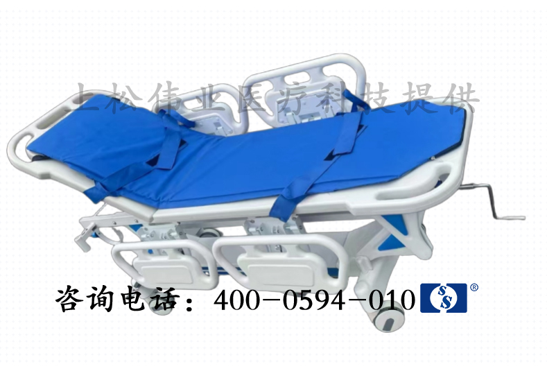 材质:PP护栏、床面,钢制车架,可升降,不锈钢输液架,中控静音脚轮,中间导向轮