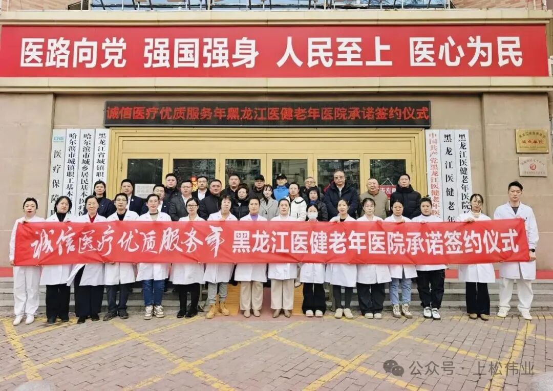 2026 年 3 月 10 日下午,黑龙江医健医院七楼会议室内气氛庄重而热烈,“诚信医疗优质服务年” 承诺签约仪式在此隆重举行。本次活动由中共黑龙江医健医院支部委员会与黑龙江医健医院联合主办,得到哈尔滨市营商环境建设监督局信用处、哈尔滨市市场监管局消费者权益保护处、哈尔滨市市场监管局质量规划发展处、中共哈尔滨市南岗区社会工作部、政协哈尔滨市南岗区教科卫体委、中共哈尔滨市南岗区革新街道工作委员会、黑龙江省志愿服务联合会、哈尔滨市信用协会,以及黑龙江省民营医疗健康服务协会秘书长、哈尔滨市信用协会医疗健康专业委员会秘书长、上松伟业医疗联盟陈国松先生的悉心指导,共同见证这场以 “坚守诚信底线、精进医疗技术、普惠民生福祉” 为核心的医疗行业盛会,携手擘画医疗服务高质量发展的全新蓝图。